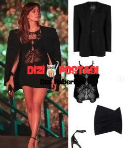 Başarılı ve güzel oyuncunun son bölümde giymiş olduğu Ceketi MUGLEROFFİCİAL markasına, Özel Tasarım Bluzu JONATHAN SİMKAİ, Eteği AWAVESTUDİO Ayakkabı ise ACADEMİA markasına ait olduğu bilgisine ulaşıldı.