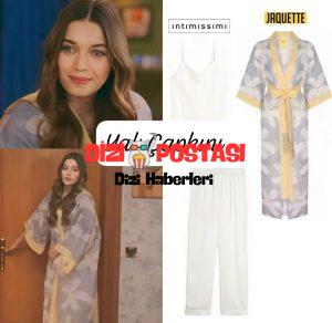 Her bölümde tarzıyla dikkatleri üzerine çeken Yalı Çapkını Seyran’ın son bölümde giymiş olduğu JAQUETTE markasına ait Gri Sarı Çiçekli Keten Kimonosu merak konusu olurken, içine giymiş olduğu Beyaz askılı takımının INTİMİSSIMI markasına ait olduğu bilgisine ulaşıldı.